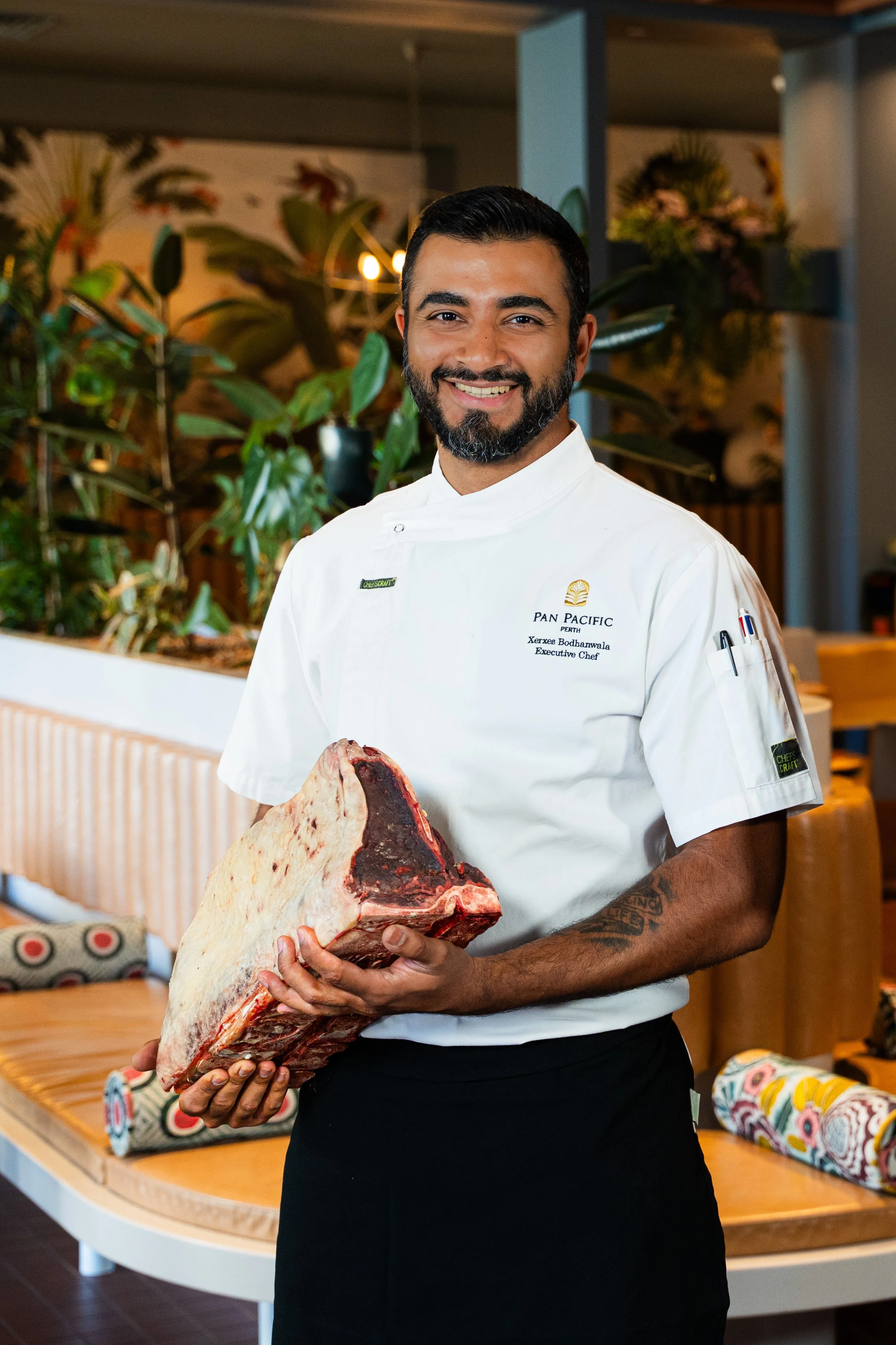 As UMA grew, and through the challenges of the pandemic, Chef Xerxes became a key part of the Pan Pacific Perth team. Today, he serves as Executive Chef for the entire hotel while continuing to guide UMA’s culinary vision. His style is defined by bold flavours, refined rustic presentation, and a love for spice, acidity, and seasonal colour.